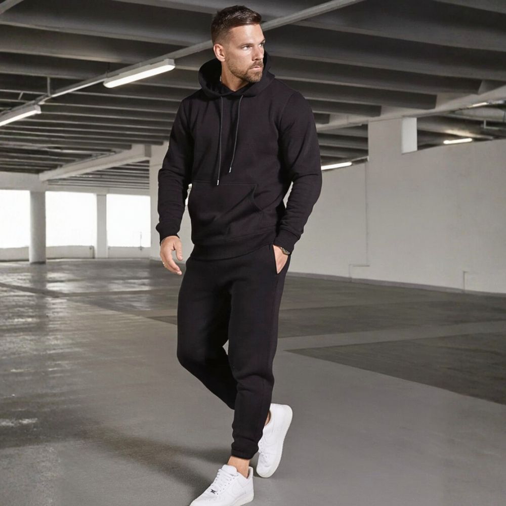 L’ensemble parfait pour un confort absolu : Une Sweat à capuche et un jogging assorti en molleton doux gratté. Sa coupe décontractée est pensée pour votre aisance au quotidien.