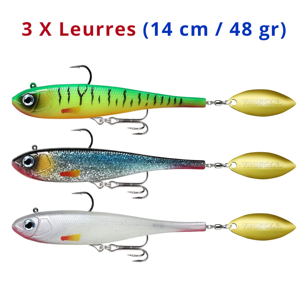 Lot de 3 Leurres Souples Tête Plombée Queue Pagaie TRUSCEND 14cm – 48gr REF LE007
