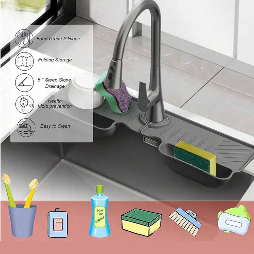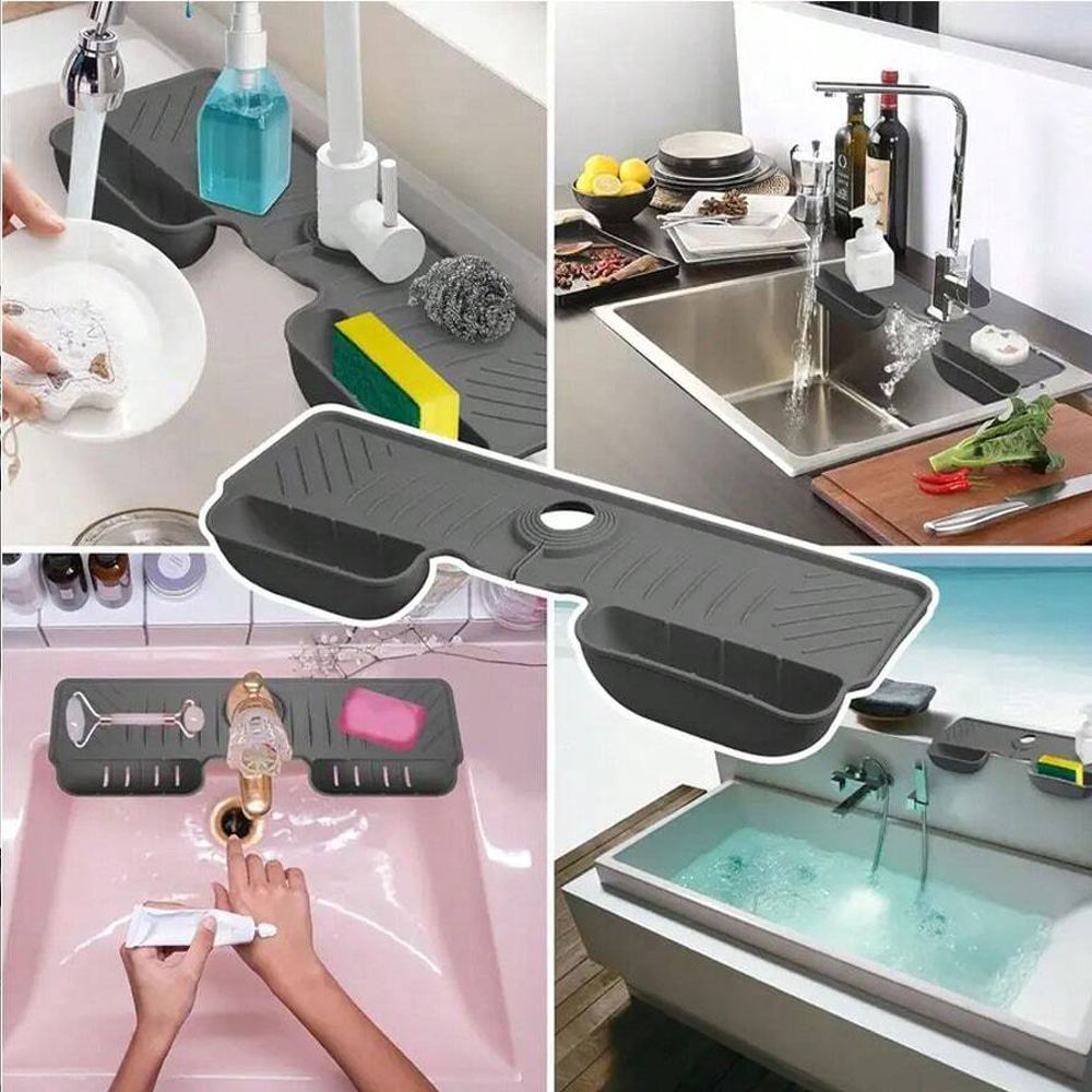 • Design Multifonction : Porte-savon, porte-éponge, et protection contre les éclaboussures dans un seul produit.