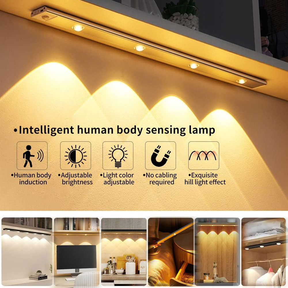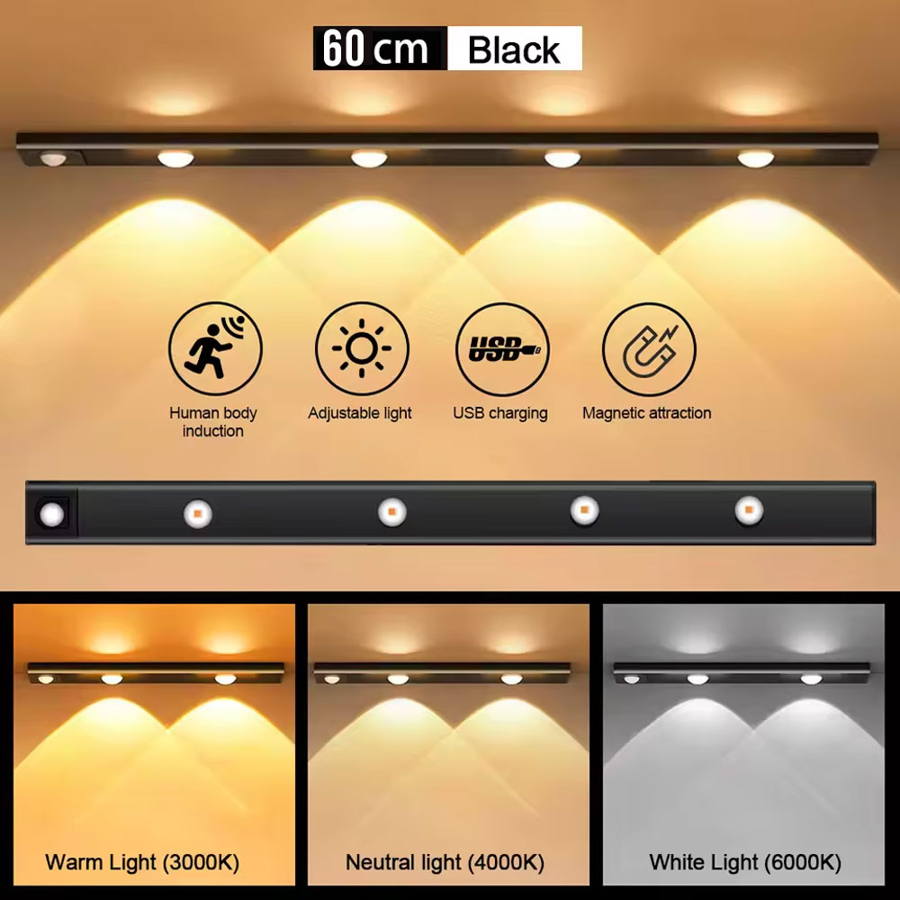 Pack de 2 lampes LED, éclairage intelligent avec capteur de mouvement, idéale pour la cuisine, le dressing, le bureau, la bibliothèque ou même comme veilleuse. Facile à installer sans câblage, elle se fixe grâce à un support magnétique et se recharge via USB.